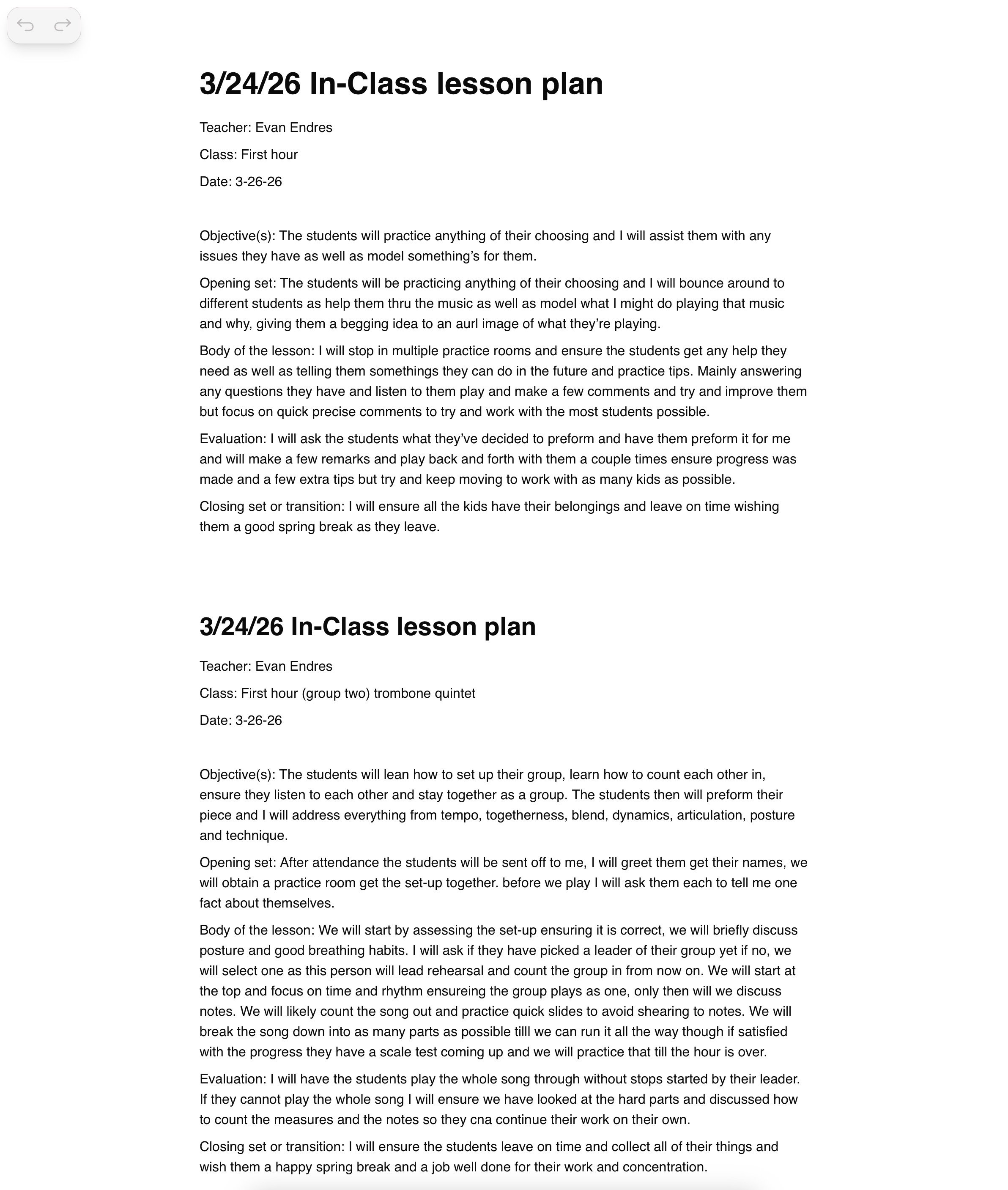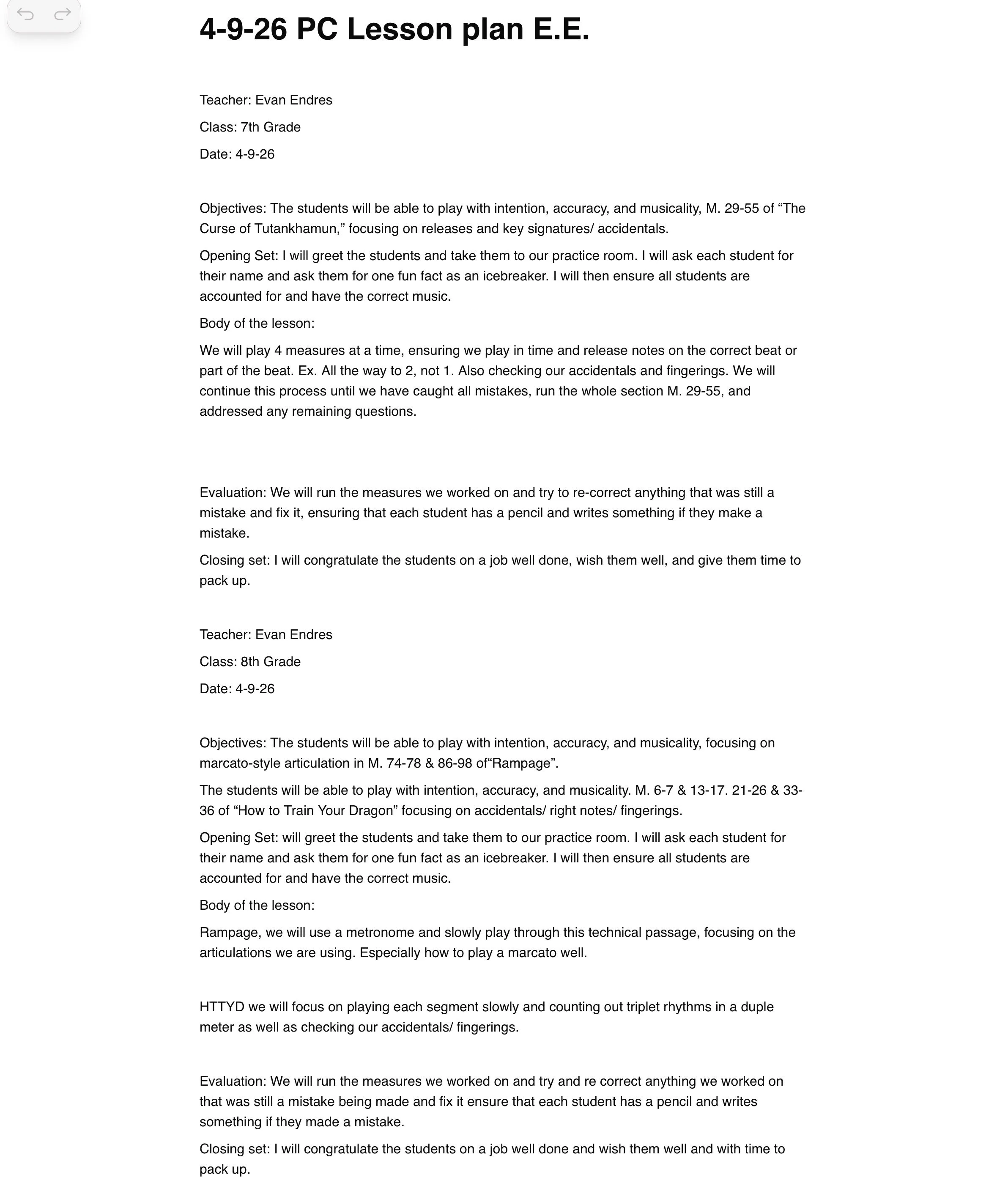 All of these opportunities I was able to capitalize on have been instrumental in my career as a music educator getting hands on experience with students before I even Declared my major which has now opened many doors for me and given me invaluable experience to carry into the classroom.