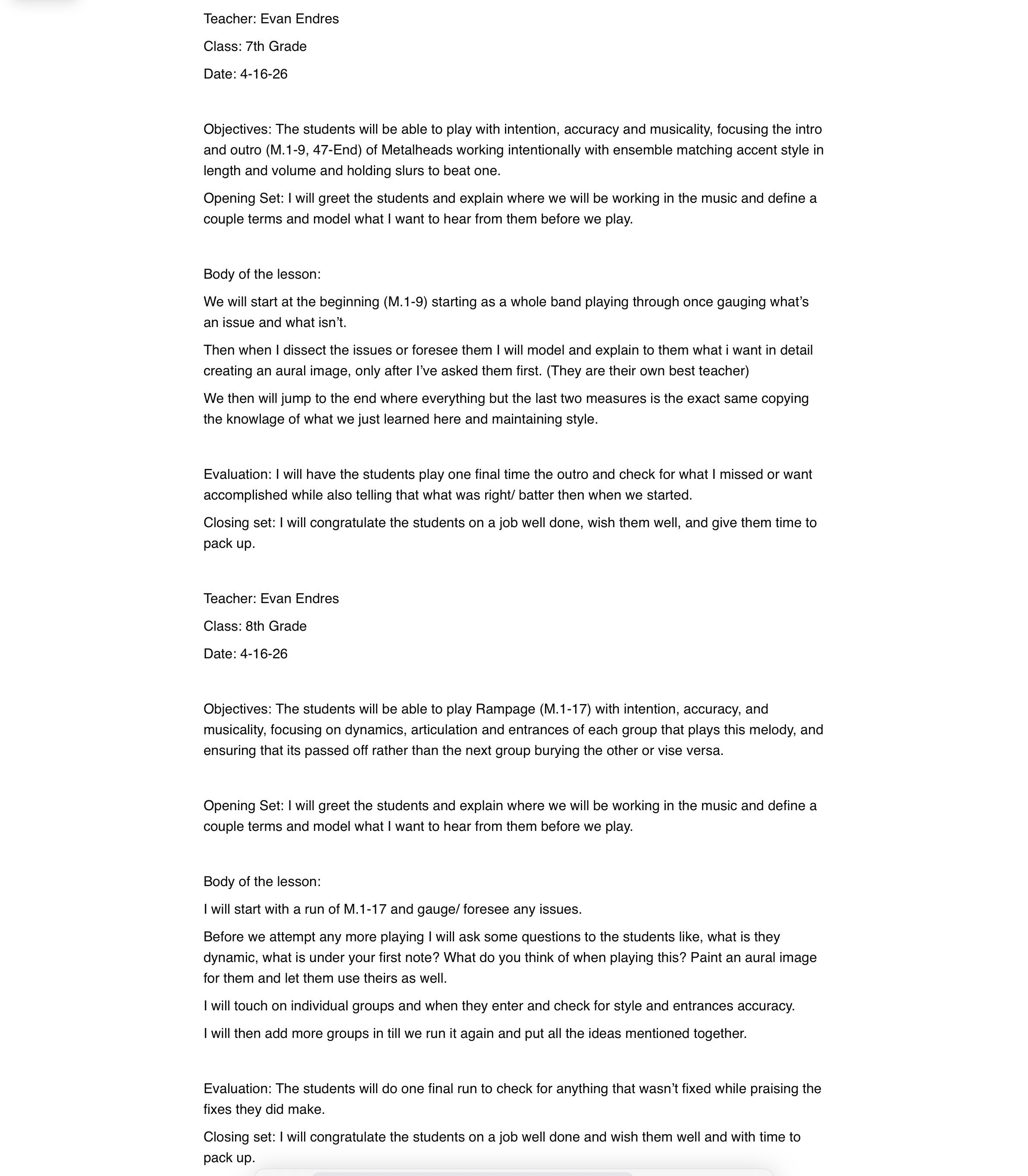 Though I am a first year teacher I have had many opportunities to teach classes around the state at multiple different schools. I know what it takes to teach a class of beginners and advanced musicians.